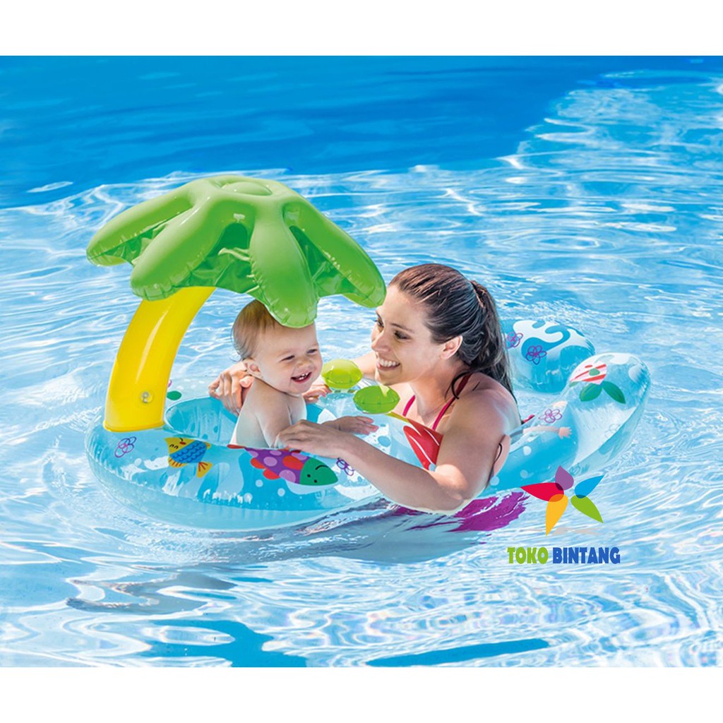 Pelampung renang ini dilengkapi dengan kanopi yang bermanfaat untuk melindungi anak dari matahari.